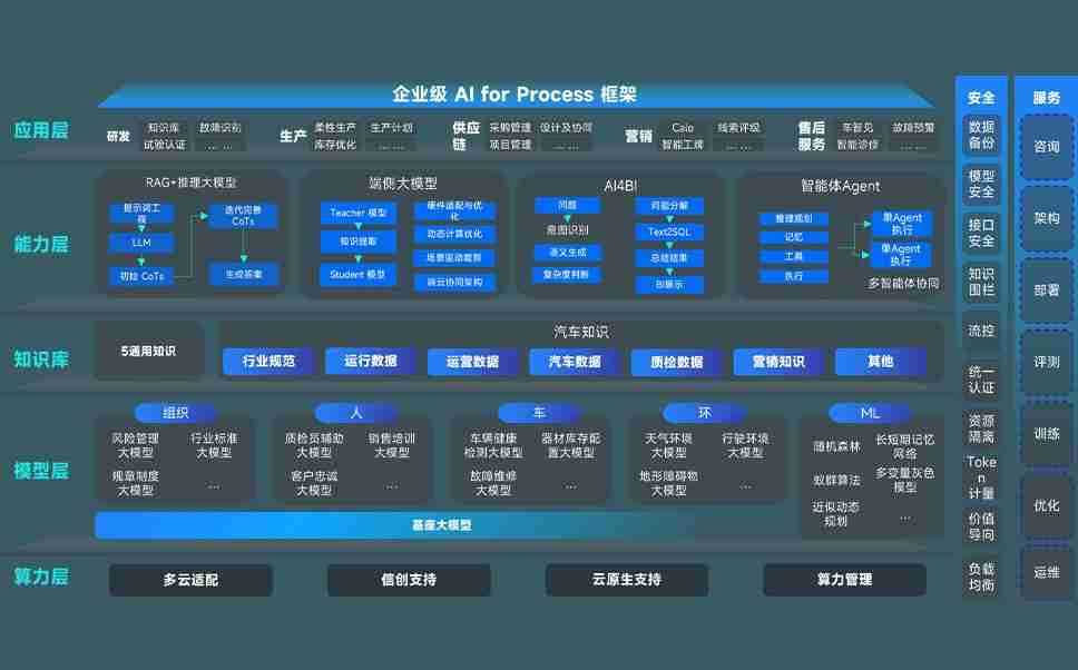 端到端的一站式AI工作空间深度融合了从企业战略规划到日常经营的全流程业务板块,,,定向解决车企内部领域多、、部门多、、、、链条长、、场景碎片化等难题,,,支持车企快速构建以AI为核心的生产力写作体系,,,,实现任务执行与AI能力的无缝集成与交互