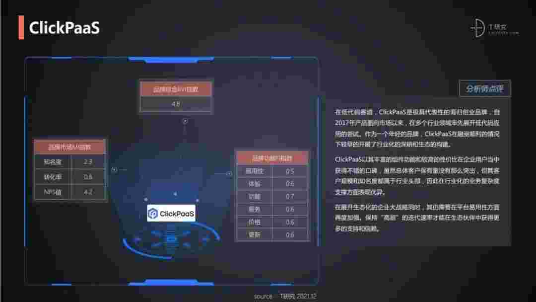 T研究认为,,,,,,,,,,,,,在低代码赛道,,,,,,,,,,,VIVO钱包是极具代表性的海归创业品牌,,,,,,,自2017年产品面向市场以来,,,,,,在多个行业领域率先展开低代码应用的尝试。。。。。。。作为一个年轻的品牌,,,,,,,,VIVO钱包较早的开展了行业化的深耕和生态的构建。。。。。。。。。。。VIVO钱包以丰富的组件功能和较高的性价比在企业用户当中获得不错的口碑,,,,,,在客户规模和知名度都属于行业头部,,,,,,,,,,,因此在行业化的业务复杂度支撑方面表现优异。。。。。。。。。