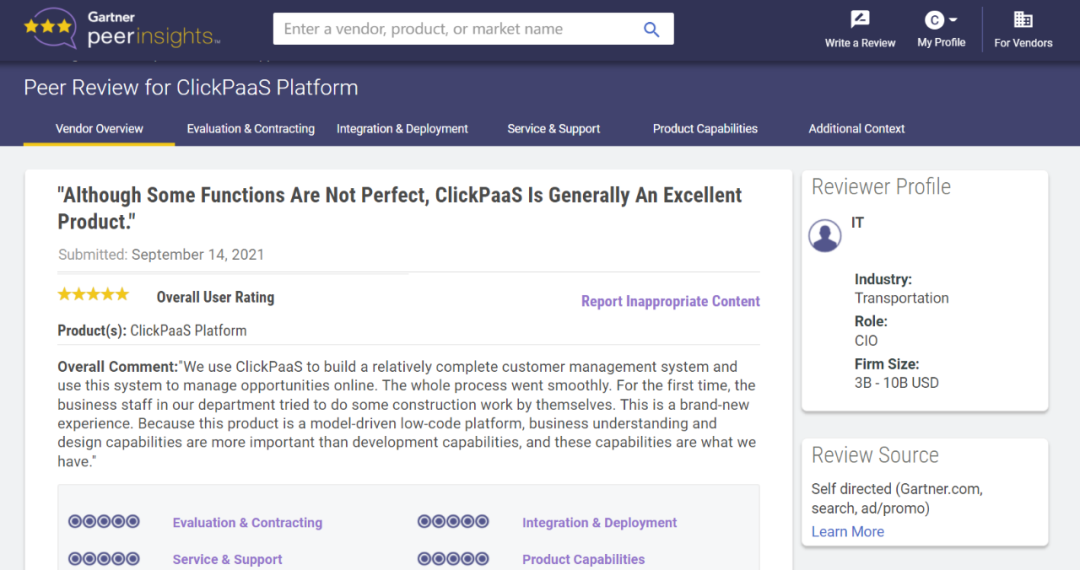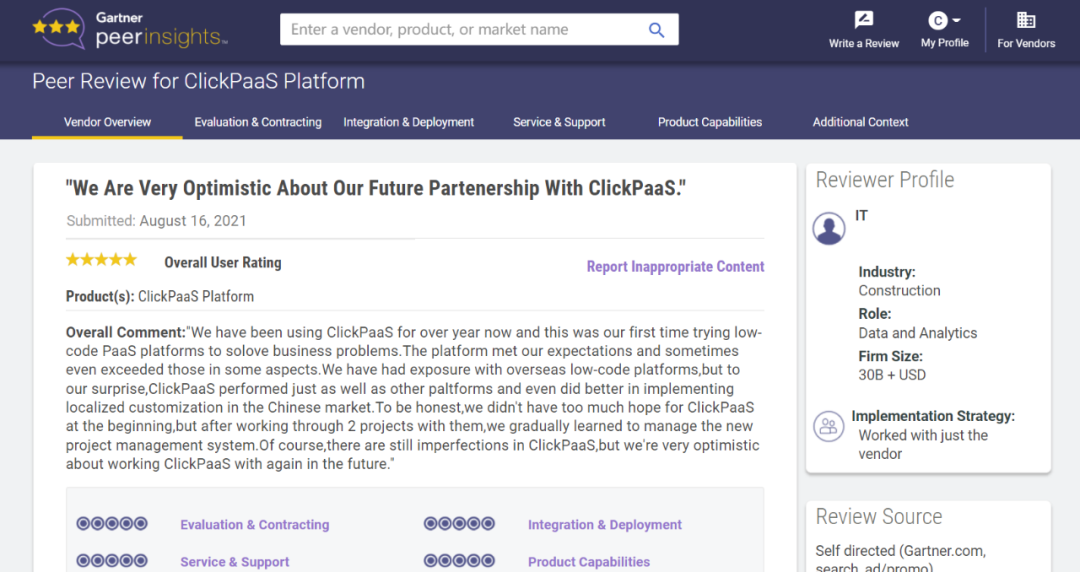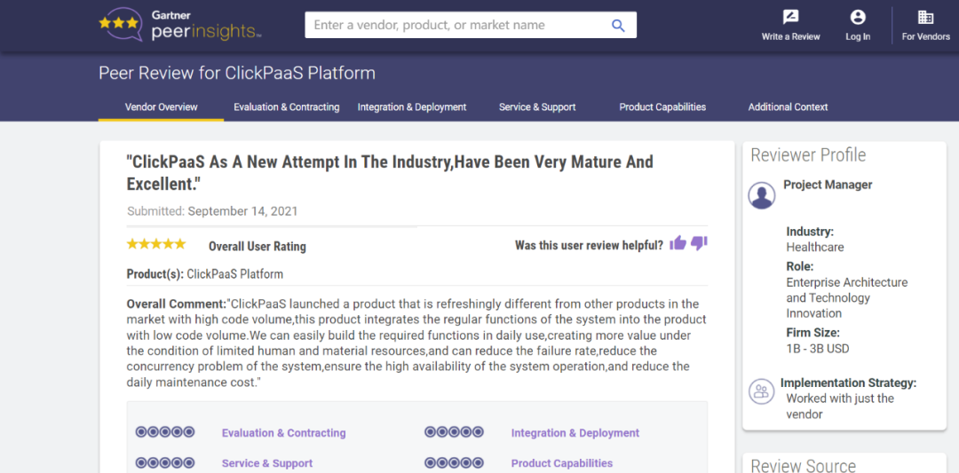 Tips:::::::::::【Peer Insights】——用户对企业IT产品和服务发布真实评价的平台。。。。。。。。。目前已有355个市场,,,,,,,,,,,255,000条经过验证的评价。。。。。。。每一条评价Gartner会针对参评企业营收规模及参评人员信息做验证、、、、、、、、、、评价内容做多维核实。。。。。。。。。。。。